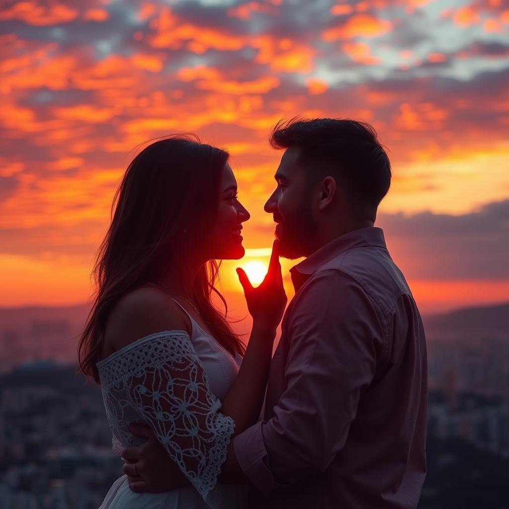 Love ignites under the fiery sunset sky, as passion burns as brightly as the spices of life creating a breathtaking panorama.