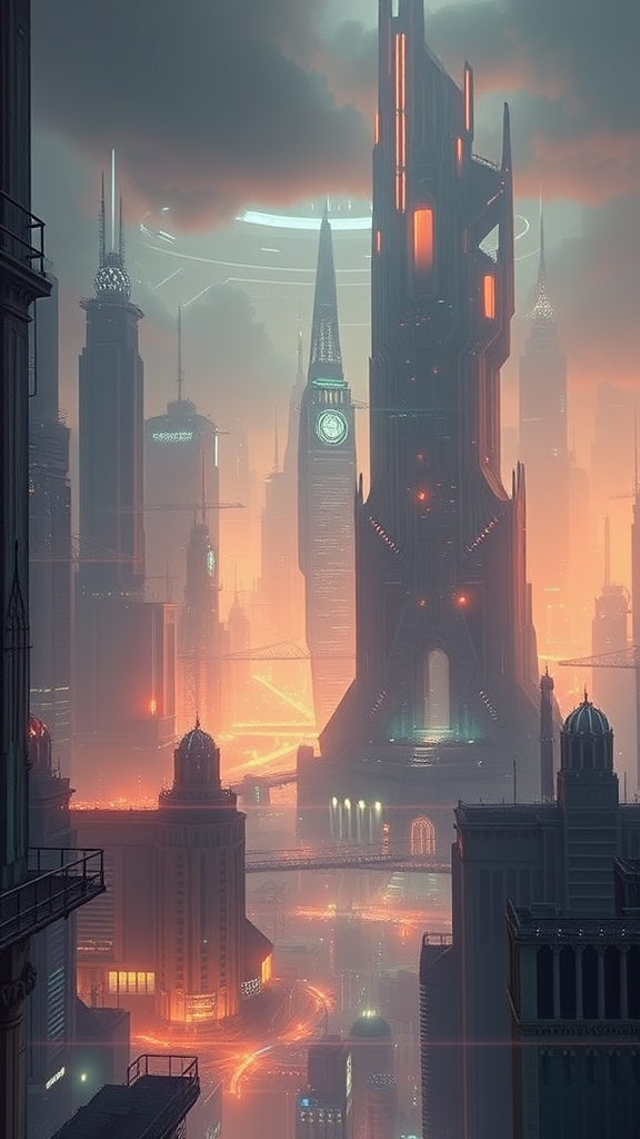 Majestic and awe-inspiring view of the city's grand and alien infrastructure, showcasing immense scale and vastness, glowing and pulsing with enigmatic energy, infused with mysterious technology. Inspired by cutting-edge 3D renderings and contemporary trends from platforms like Pinterest and Tumblr, with influences from artists such as Vitaly Bulgarov, Jama Jurabaev, Maciej Kuciara, Raphael Lacoste, and Alex Roman. The scene subtly integrates elements of abstraction and surrealism, focusing on the dynamic interplay of light and shadow to evoke a sense of wonder and curiosity.