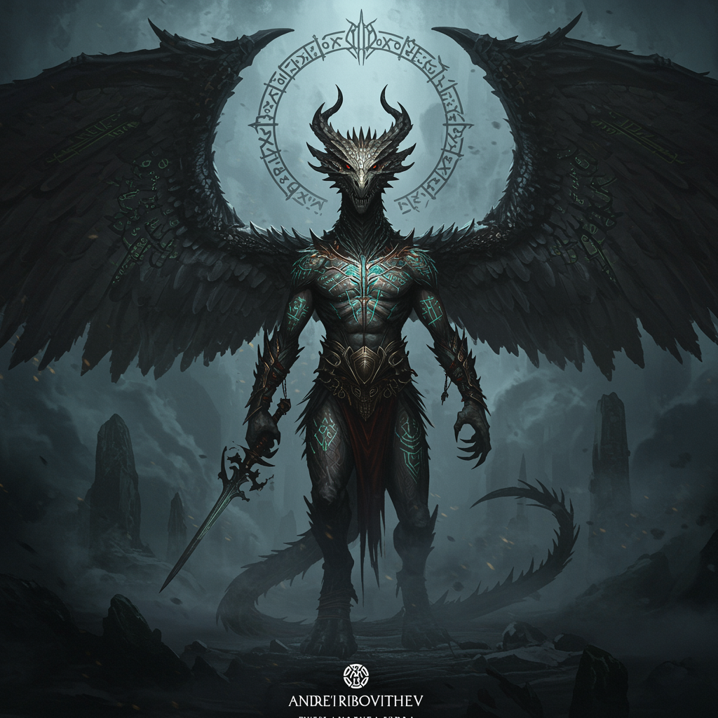 Majestic colossal dragon with scaled wings, evoking Magic the Gathering, enveloped in swirling mist and shadowy haze, by Andrei Riabovitchev, Massimo Caggese, Peter Mohrbacher. Enigmatic and intricate with a moody atmospheric backdrop, reminiscent of Moebius and Arney Freytag. Striking pose reminiscent of ArtStation galleries, with flawless composition, intense lighting, and dramatic shadows. Orthodox symbols intricately woven into the design, embodying a dark fantasy concept art style. Featuring ambient magic realism in ultra-high-definition 8k resolution, this piece is a complex, hyper-detailed, maximalist cinematic portrayal of tribal dark fantasy, stylized with an air of ethereal mystery.