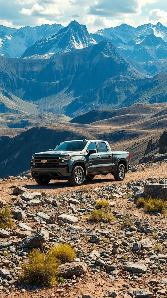 Majestic landscapes unfold as the powerful Silverado traverses rugged terrain, combining rugged strength with sophisticated design, capturing the spirit of adventure in every journey.