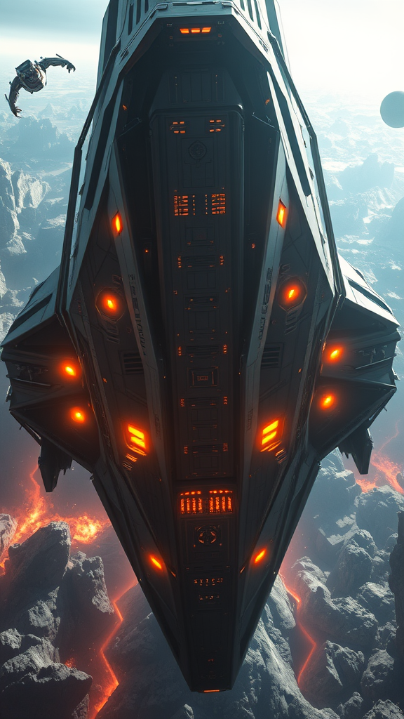 Majestic space vessel transcending into an alternate dimension, brilliantly composed, exquisitely detailed, with breathtaking intricacy, rendered in ultra-realistic octane style, capturing the essence of trending concept art on platforms like ArtStation. The scene exhibits unmatched artistry with lifelike, photorealistic elements, inspired by the sublime chiaroscuro and cinematic lighting techniques of masters. A fusion of award-winning photography's realism and the timeless beauty of oil paintings, drawing inspiration from the likes of Raphael, Caravaggio, and the visionary styles of Greg Rutkowski, Beeple, Beksiński, and Giger. A cosmic masterpiece where science fiction meets grand artistic expression.