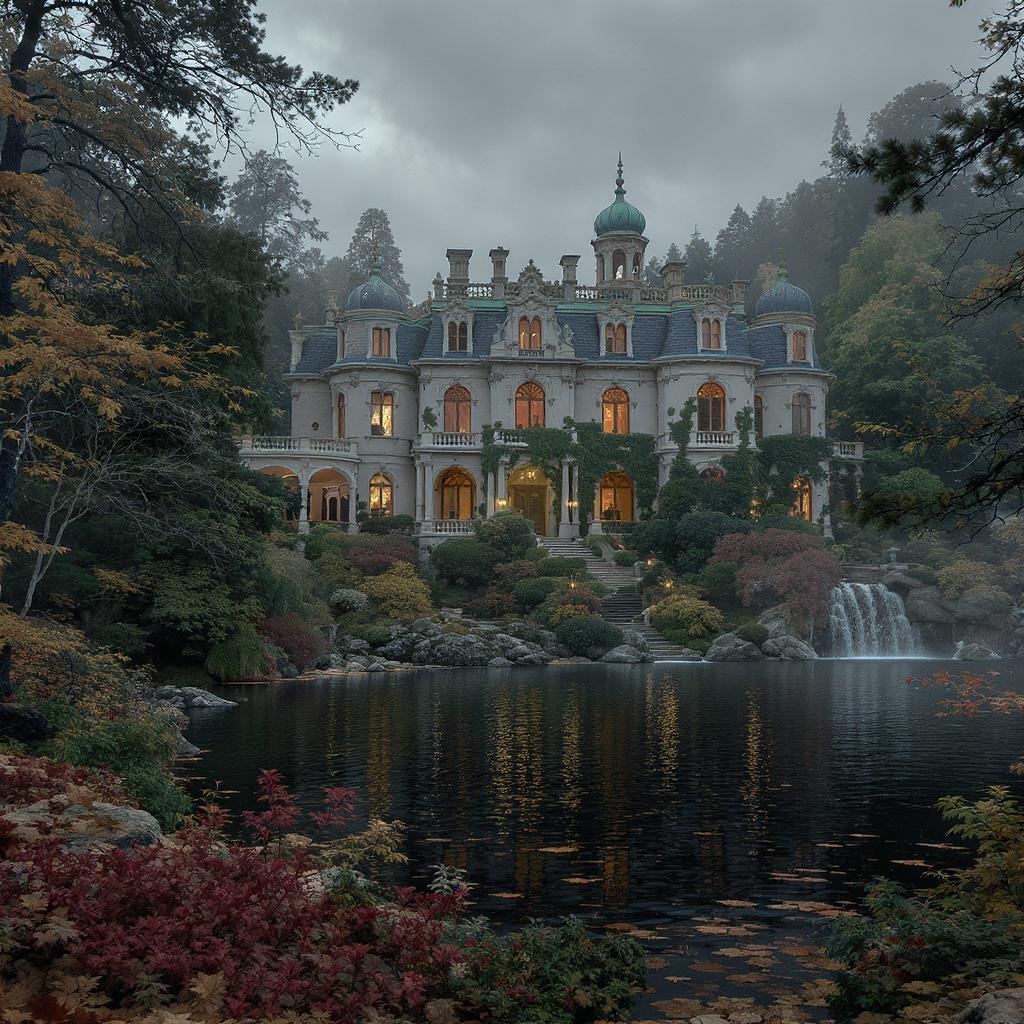 Majestic vintage mansion by a serene lake, 8k uhd resolution, impeccably composed, exquisitely detailed, complex textures, rendered in octane, gaining traction on artstation, visually artistic, lifelike concept art reminiscent of Greg Rutkowski's style, dramatic cinematic lighting effects, hyperrealistic touch, ultra-sharp 8k clarity, masterful use of depth of field, capturing the essence of fine photography.