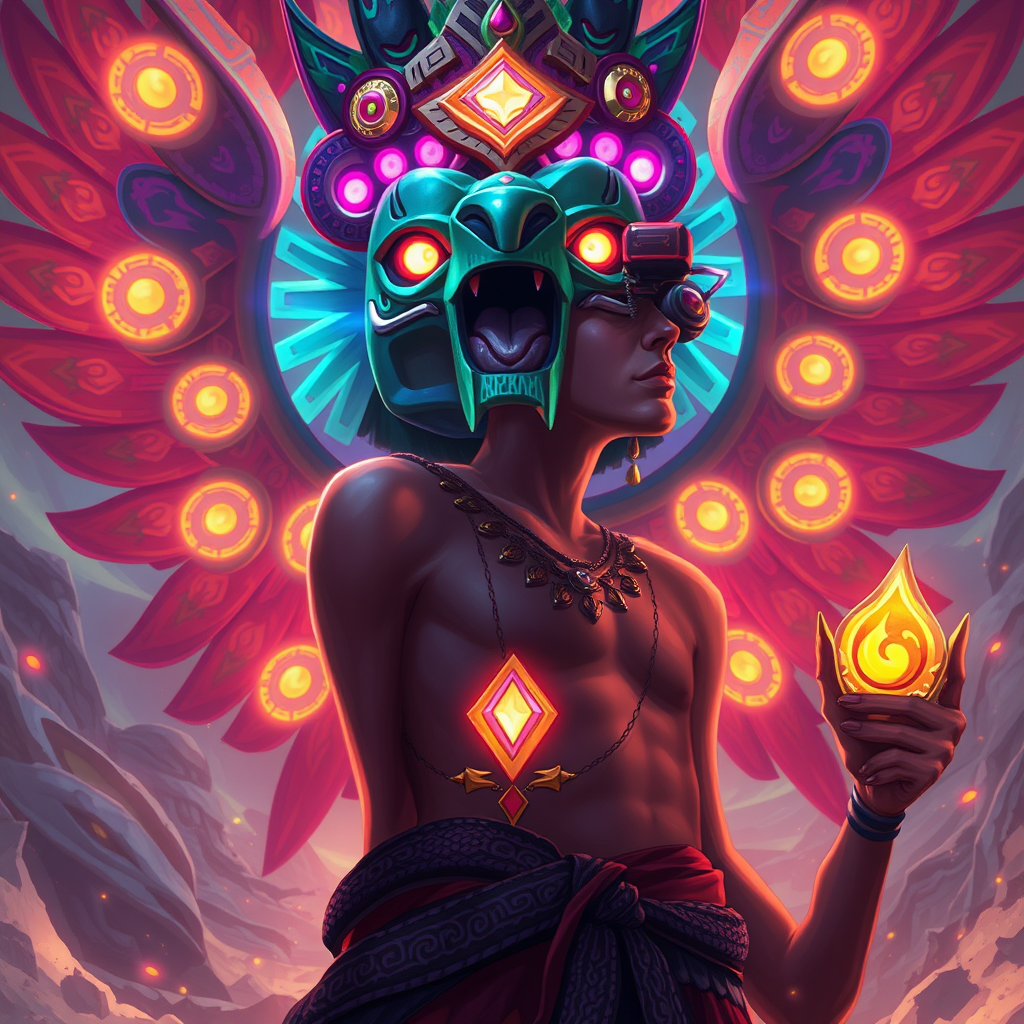 Male man boy totem animal Aztec greeble tribal style vibrant fanart ornate fantasy hearthstone Ankama GTA5 cover style official Behance HD Artstation by Jesper Ejsing and RHADS Makoto Shinkai Lois van Baarle Ilya Kuvshinov Rossdraws colorful pastel glowing aura intricate elegant sharp focus digital painting concept art matte art by WLOP and Artgerm Greg Rutkowski Alphonse Mucha masterpiece female woman girl with celestial motifs luminescent patterns ethereal surroundings mythical ambiance dynamic composition.