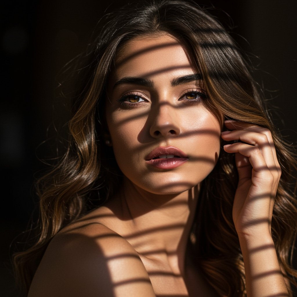 Marvel at the power of contemporary photography through this stunning close-up portrait of a captivating woman, illuminated by sun rays and reflections. Captured with the Sony A7R IV, its 61-megapixel full-frame sensor delivers extraordinary detail. The Sony FE 85mm f/1.4 GM lens accentuates depth of field while producing a luxurious, creamy bokeh. Set at ISO 100, with a shutter speed of 1/250 and an aperture of f/1.4, the photo achieves perfect lighting harmony and striking detail. This ultra-high-resolution image serves as a remarkable tribute to the art of photography and the enduring allure of its subject.