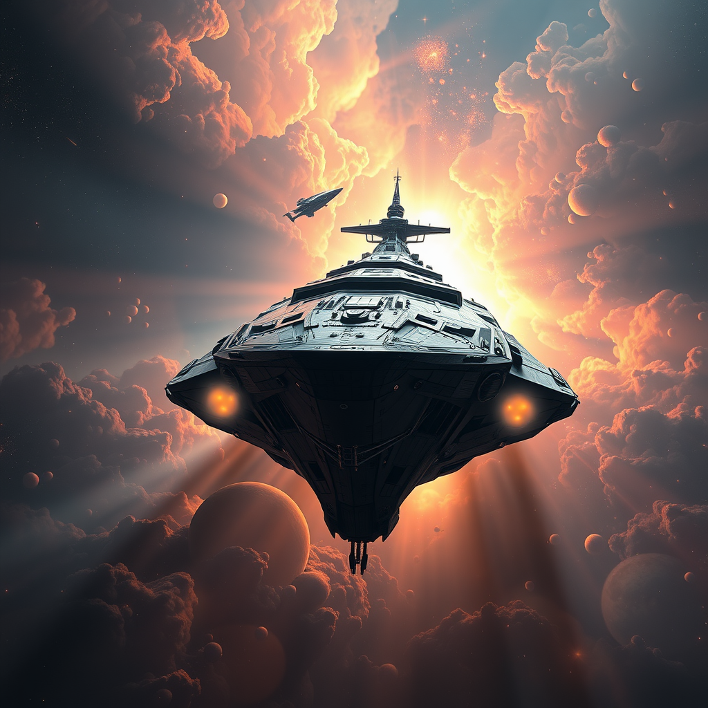 mdjrny-v4 style, stunningly detailed star cruiser entering a fresh dimension, immaculate composition, exquisitely intricate, superbly detailed, rendered in octane, popular on artstation, artistic brilliance, photo-realistic concept art, gentle organic volumetric cinematic lighting, chiaroscuro, prize-winning image, masterpiece on canvas, inspired by raphael, caravaggio, with hints of greg rutkowski, beeple, beksinski, and giger influence, a fusion of classic and futuristic artistry.