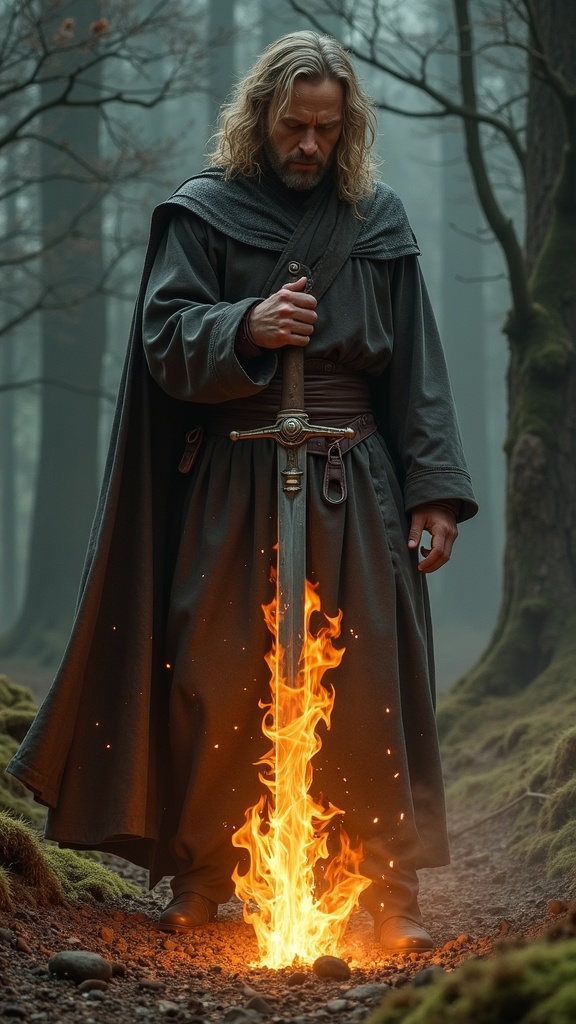 View this AI-generated image featuring and still meriadoc stood there blinking through his tears unnoticed by those around him there on the ground lay his weapon its blade smoking like a dry branch thrust into a fire he watched as it writhed withered and was consumed before his eyes thus passed the