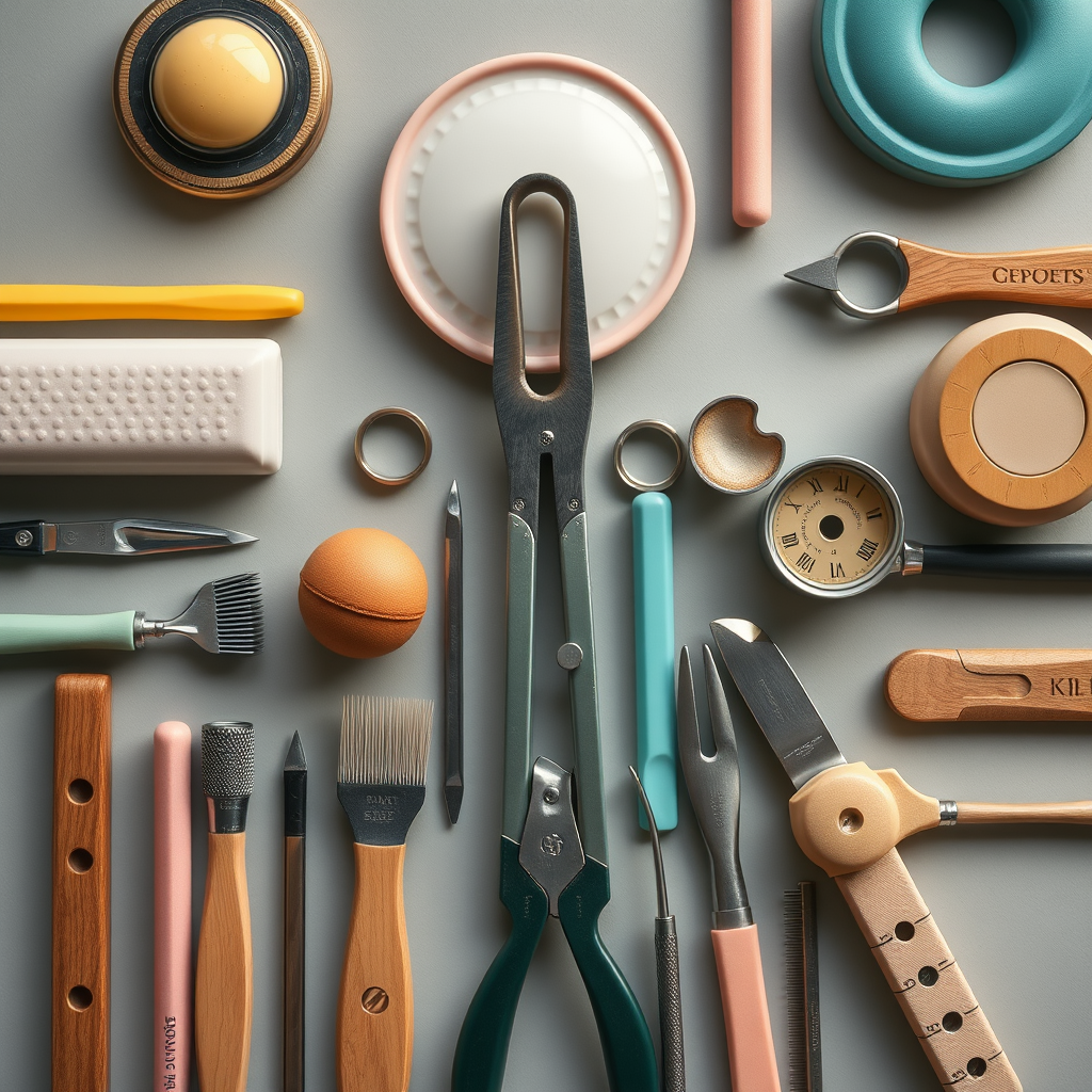 meticulous arrangement of explorer tools knolling :: muted pastel colors inspired by Wes Anderson, soft studio lighting, gentle contrast, ultra high definition