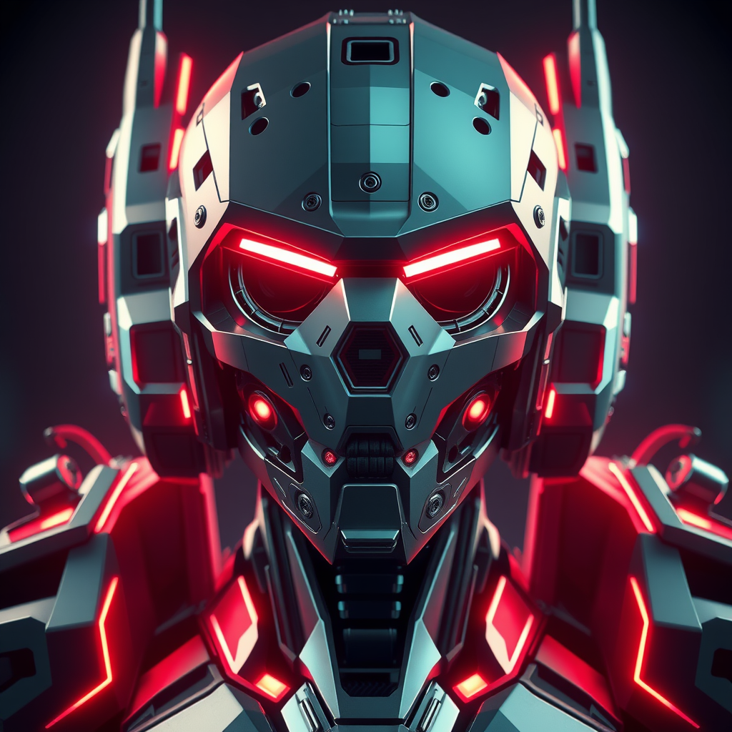 Military cyberpunk nousr robot, featuring stealth elements and neon lights. A character design with hard surface aesthetics, smooth contours, and a highly detailed, intricate face. Emphasizing symmetry in a real-time setting, enhanced with VFX and volumetric lighting. The ambient light accentuates a digital 3D environment, presented in UHD HDR cartoon style. Blending anime and digital painting techniques, the design reflects an abstract metal sculpture style in a cyborg-human hybrid. Features include asymmetrical elements, purposeful holes, an expressive mouth subtly out of frame. The artwork avoids common pitfalls like bad art, blurry visuals, and gross proportions, steering clear of asymmetry and unintentional inaccuracies like signatures, words, descriptions, or watermarks.
