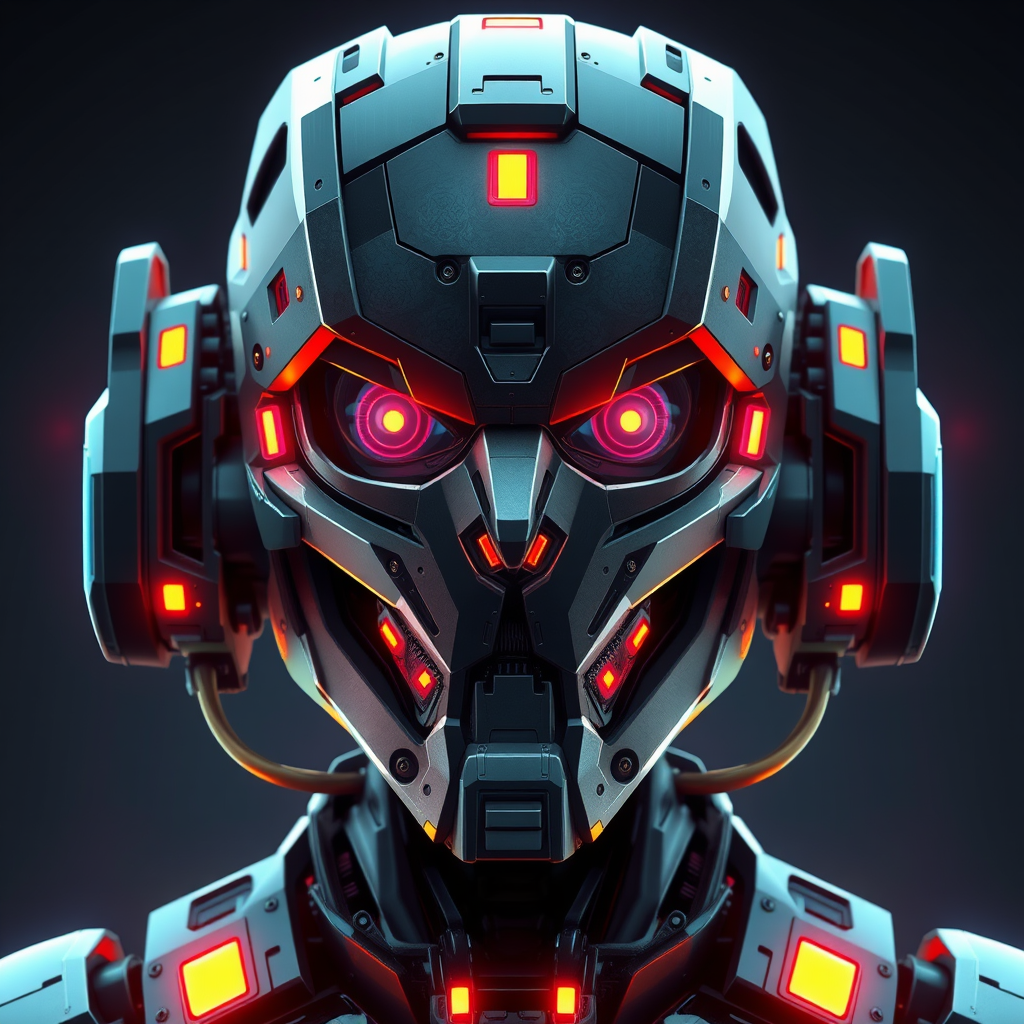military cyberpunk robot character design stealth glowing hard surface smooth detailed symmetrical intricate details with abstract metal sculpture influences blending cyborg human elements featuring volumetric lighting and ambient light in a digital 3d uhd hdr cartoon style displaying anime-inspired aesthetics detailed colorful digital painting with asymmetrical aspects and intricate facial details surrounded by vfx elements enhancing a futuristic appearance crafted with abstract patterns and sleek surfaces emitting an aura of sophistication and power