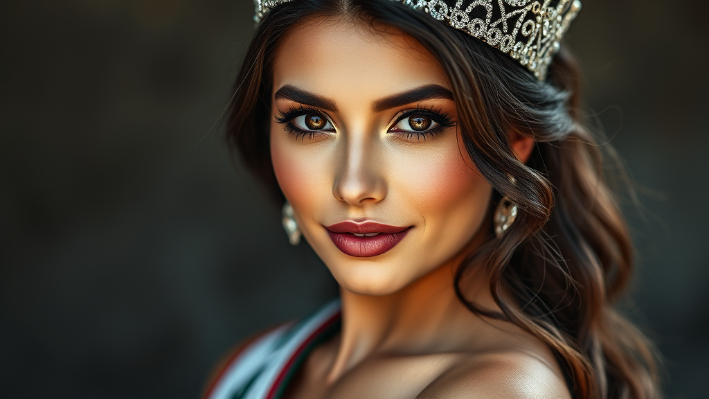 Miss Mexico, a captivating portrait showcasing the elegance of the finest Mexican beauty, featuring stunning detail in 32-megapixel resolution, captured in 4k quality with an 85mm lens. Achieving sharp focus at f:8, ISO 100, shutter speed of 1/125, and beautifully enhanced by soft backlighting. An award-winning photograph with subtle catchlights, exceptional clarity, exquisite facial symmetry, presented in breathtaking 8k.