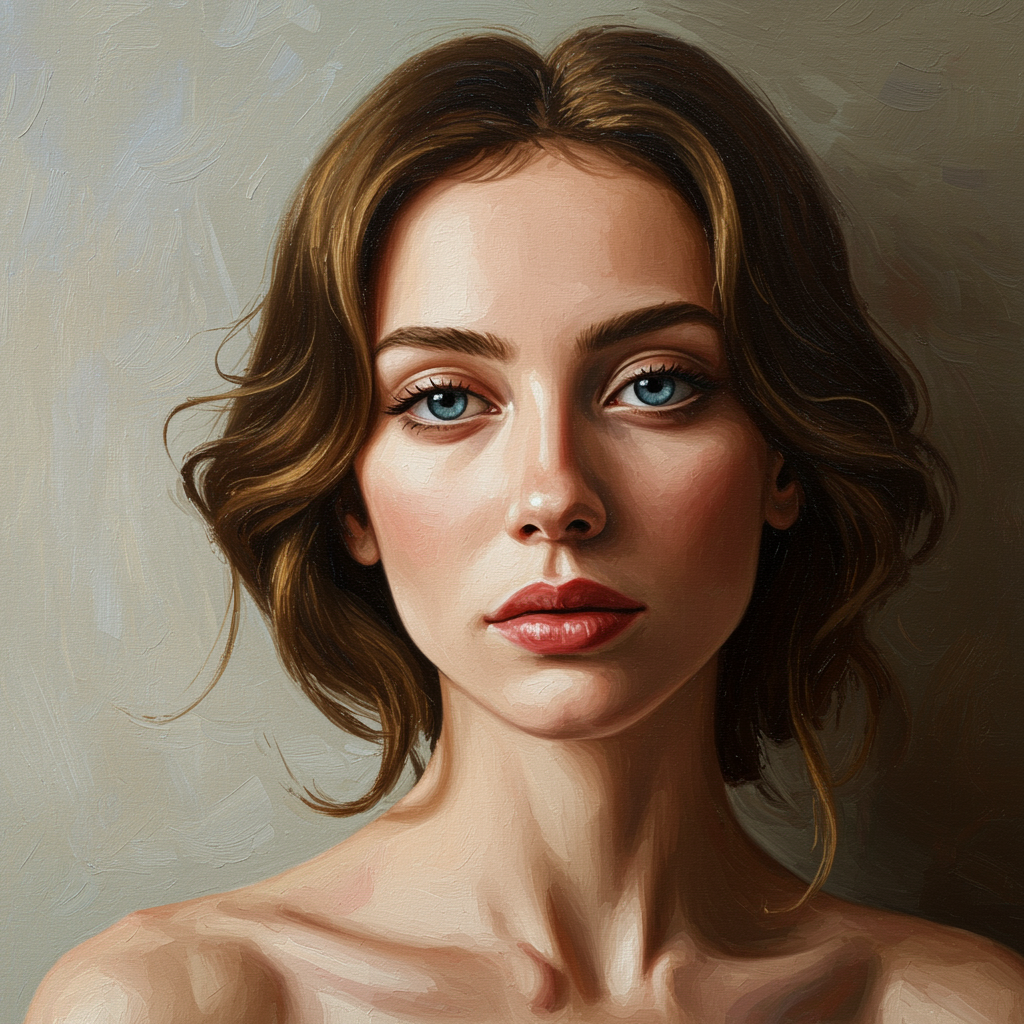 View this AI-generated image featuring model delicate impressionist impasto brush strokes flawless composition exquisite face rim lighting character portrait against a simple backdrop intricate detail oil on canvas stunning masterpiece highly skilled craftsmanship incredibly detailed ultra high defi