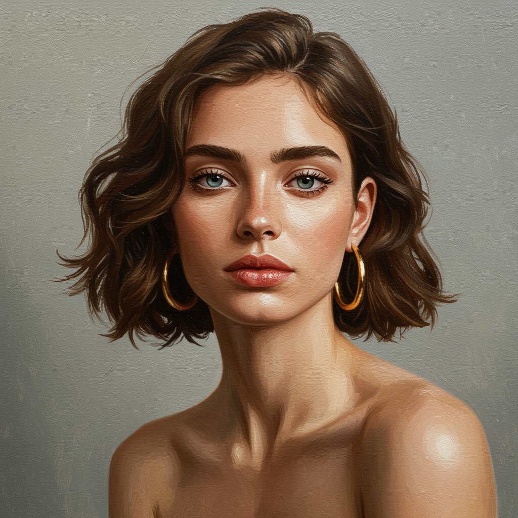 Model, delicate impressionist impasto brushwork, harmonious composition, flawless features, gentle rim lighting, captivating character portrait, simple background, intricate details, oil on canvas, artistic masterpiece, expert craftsmanship, highly detailed, ultra-high-definition resolution.