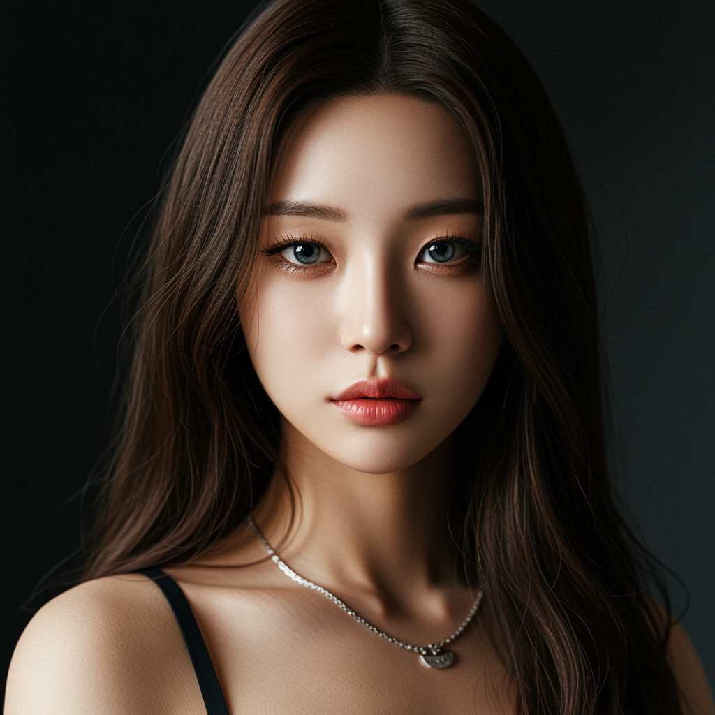 Model photoshoot, stunning Korean woman, K-pop idol, symmetrical eyes, ultra-high resolution, photorealism, 8k, hyperrealism, dramatic lighting, professional photography, elegant cat striding down the runway, f/2.0 aperture, CGI, 3D model, doll-like features, octane render, art style blending cartoon, anime, illustration, digital painting; avoid cropped images, ensure high quality without defects like jpeg artifacts, focus on beauty and precision, maintain correct anatomy and proportions, no duplicated or distorted features.