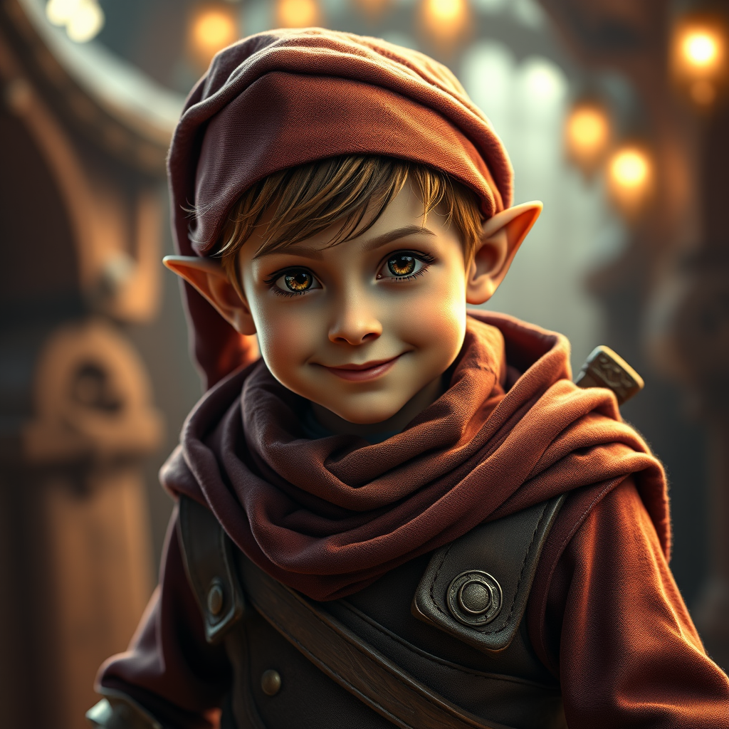 Modelshoot of a charismatic medieval male halfling thief in a fantasy ambiance, showcasing intricate details with a focus on RPG themes and cinematic lighting. The halfling stands alone, exuding charm with a friendly face and captivating, clear eyes. The image is rendered in ultra quality, perfect for an 8k wallpaper, capturing the essence of medieval allure and adventure.