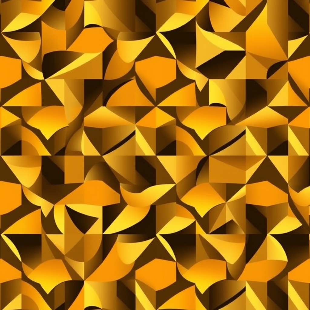 Monochrome geometric pattern illustration featuring an interplay of abstract shapes, primarily utilizing a spectrum of yellow to orange tones. This design showcases a seamless, repeating pattern, exuding complexity and modernity. The geometric shapes vary in size and orientation, creating a dynamic visual effect, while maintaining a harmonious balance throughout the composition.
