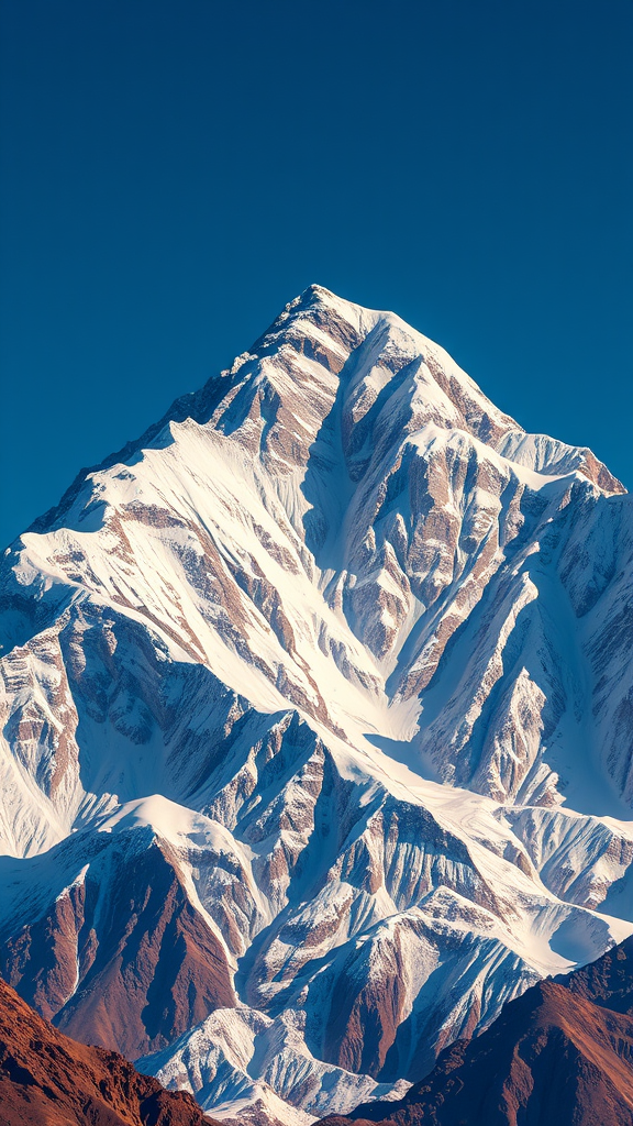 Mount Everest depicted in an illusory wallpaper style, vibrant realism, featuring modular patterns, and intense close-ups, ultra-high-definition imagery, with a focus on realism, capturing the grandeur and detail of the mountain landscape, featuring dynamic colors and textures, presenting a mesmerizing interplay between light and shadow.