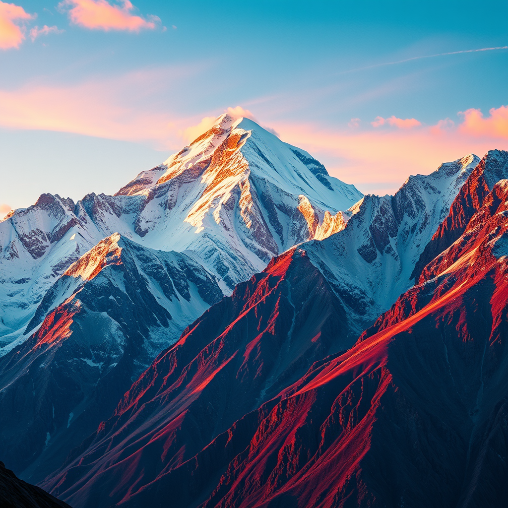 Mount Everest portrayed as illusory wallpaper, blending colorful realism with modular patterns, featuring intense close-ups, ultra-high definition imagery, and vibrant details to capture the majestic essence of the landscape.