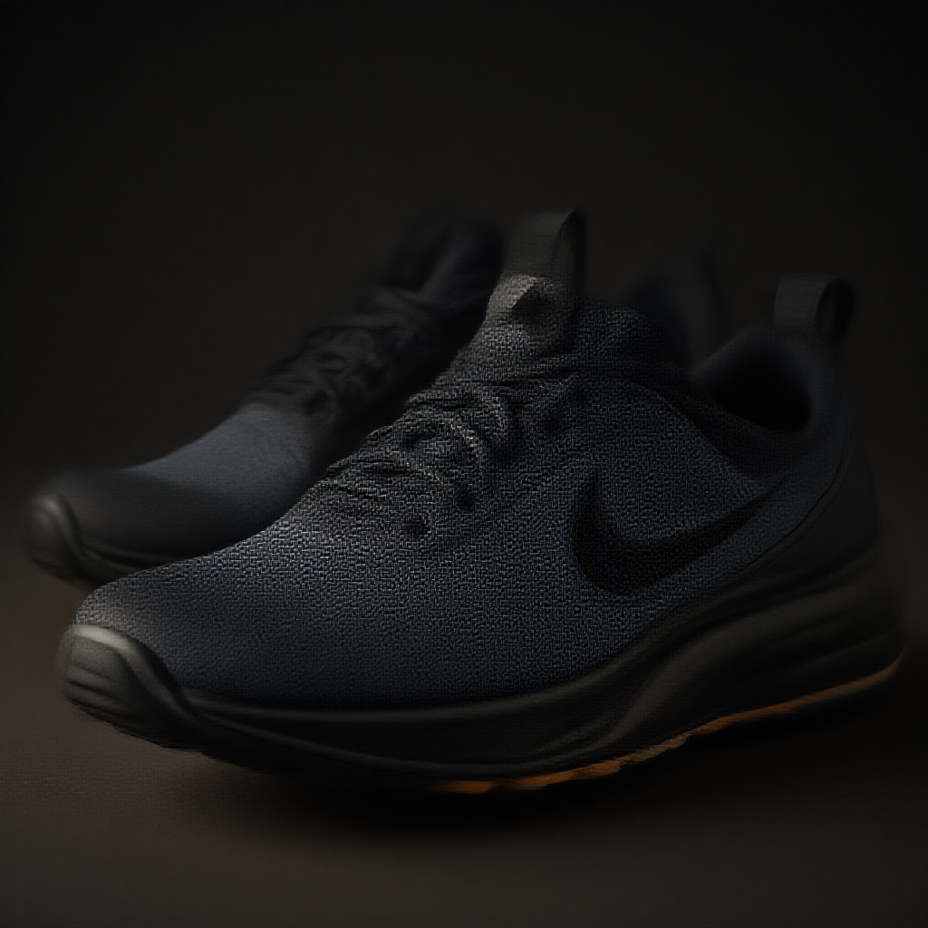 Nike speed sneakers crafted from high-performance rubber and advanced composite fibers, featuring a sleek black Nike emblem. Captured by the renowned photographer Steven Meisel, showcasing exquisite illumination, rendered in Unreal Engine and enhanced with Octane Render to create a high-definition, high-IQ 180 visual experience, aspect ratio 2:3, style 4a, with subtle creative enhancements to highlight the innovation in design.