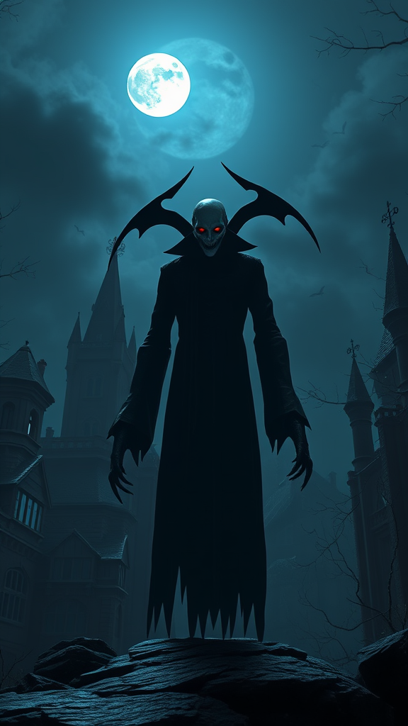 Nosferatu, a symphony of darkness and dread, rendered in stunning detail with the power of daz3d, by the imagination of artificial nightmares, where shadows dance in eerie harmony with the moonlight, and a sense of foreboding permeates the gothic landscape, ancient castles loom under a starless sky, while the figure of Nosferatu, with piercing eyes and elongated limbs, stands as a haunting silhouette amidst a world caught between reality and nightmare, the air is thick with an unsettling energy, as though even time itself holds its breath in the presence of this timeless terror.