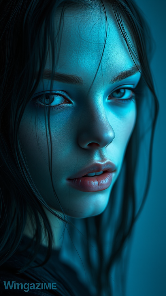 Olga Moyb MSD 05, captured by Juana Roque for W Magazine, showcases a fusion of dark and sky-blue tones, embodying a futuristic pop aesthetic reminiscent of Anne Geddes. The close-up intensity highlights intricate body extensions, brought to life with subtle digital enhancements, while drawing inspiration from Felicia Simion’s distinct style.