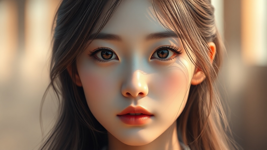 One captivating Korean girl with stunning detailed eyes and perfect symmetry, set against an immersive backdrop with volumetric haze and global illumination. The scene is lit softly with natural light, bringing out the realism of the high-detail digital painting. The artwork features ultra-high resolution and is rich in vibrant colors, all rendered with physically-based techniques. The overall aesthetic merges realism with an artistic flair, using a soft palette to enhance natural beauty captured through an f2.2 lens.