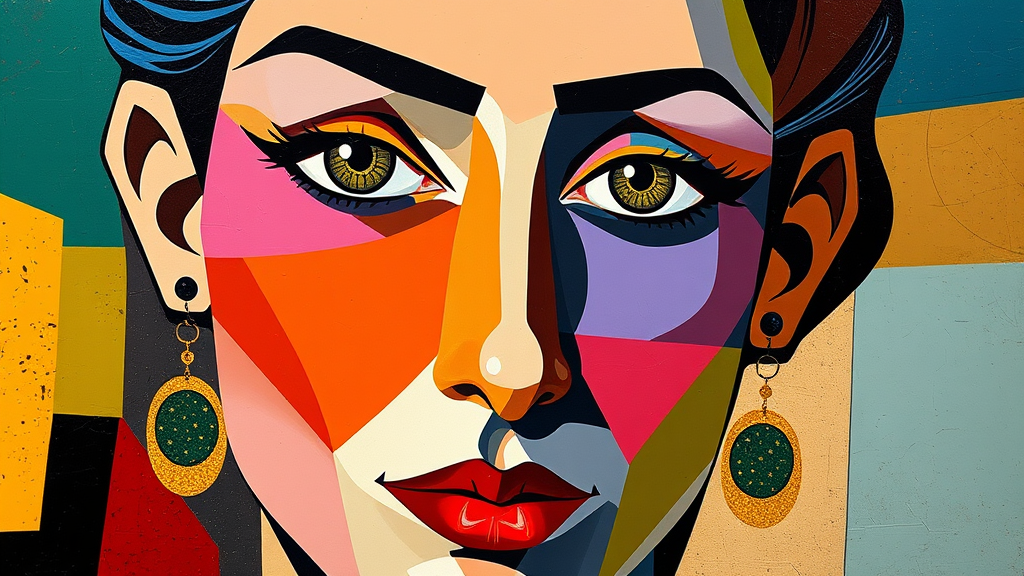 Pablo Picasso-inspired cubist portrait of a woman's face characterized by geometric shapes and vibrant hues, intricately blending bold colors and abstract forms to create a dynamic and expressive interpretation, with a harmony of fragmented perspectives capturing the essence of modern artistic innovation.