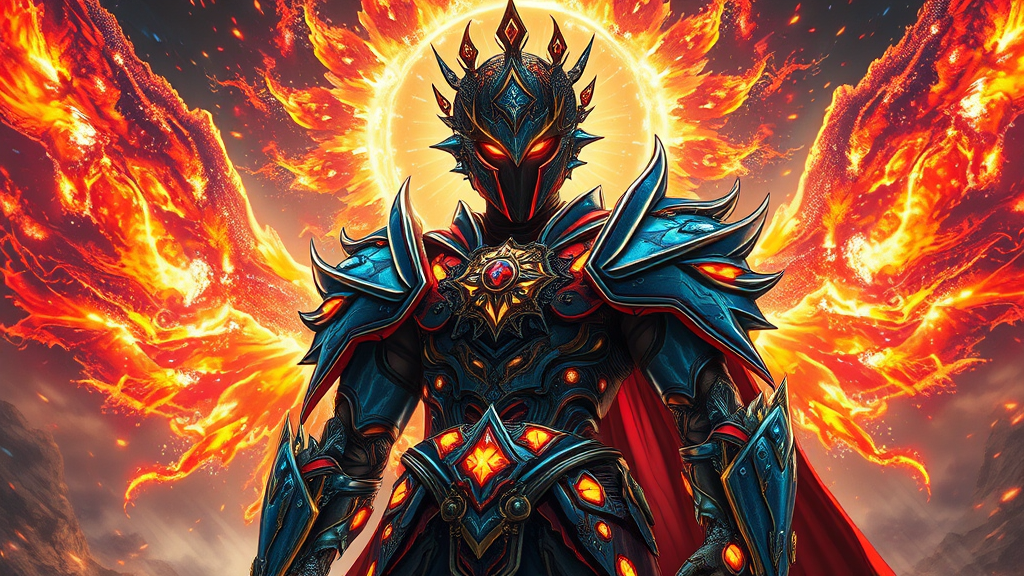 paladin of cosmic dawn wearing chaotically articulated auroral armor, illuminated by super nova like explosive forces, amidst vivid fantasy art with meticulously crafted details, intricate geometric patterns, and symbology, amidst 3 varied volumetric lighting effects that shift and pulse with an otherworldly energy, all captured within a cinematic aspect ratio of 2:3.