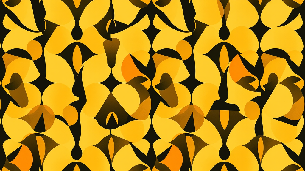Pattern illustration featuring a dynamic interplay of abstract geometric shapes, utilizing a monochrome palette with rich shades of yellow and orange. Incorporate fluid abstract forms into a seamless, repeating design that captures both complexity and modernity, with the aspect ratio set at 9:16. Add subtle creative variations within the geometric interplay to enhance visual intrigue while maintaining the original concept.