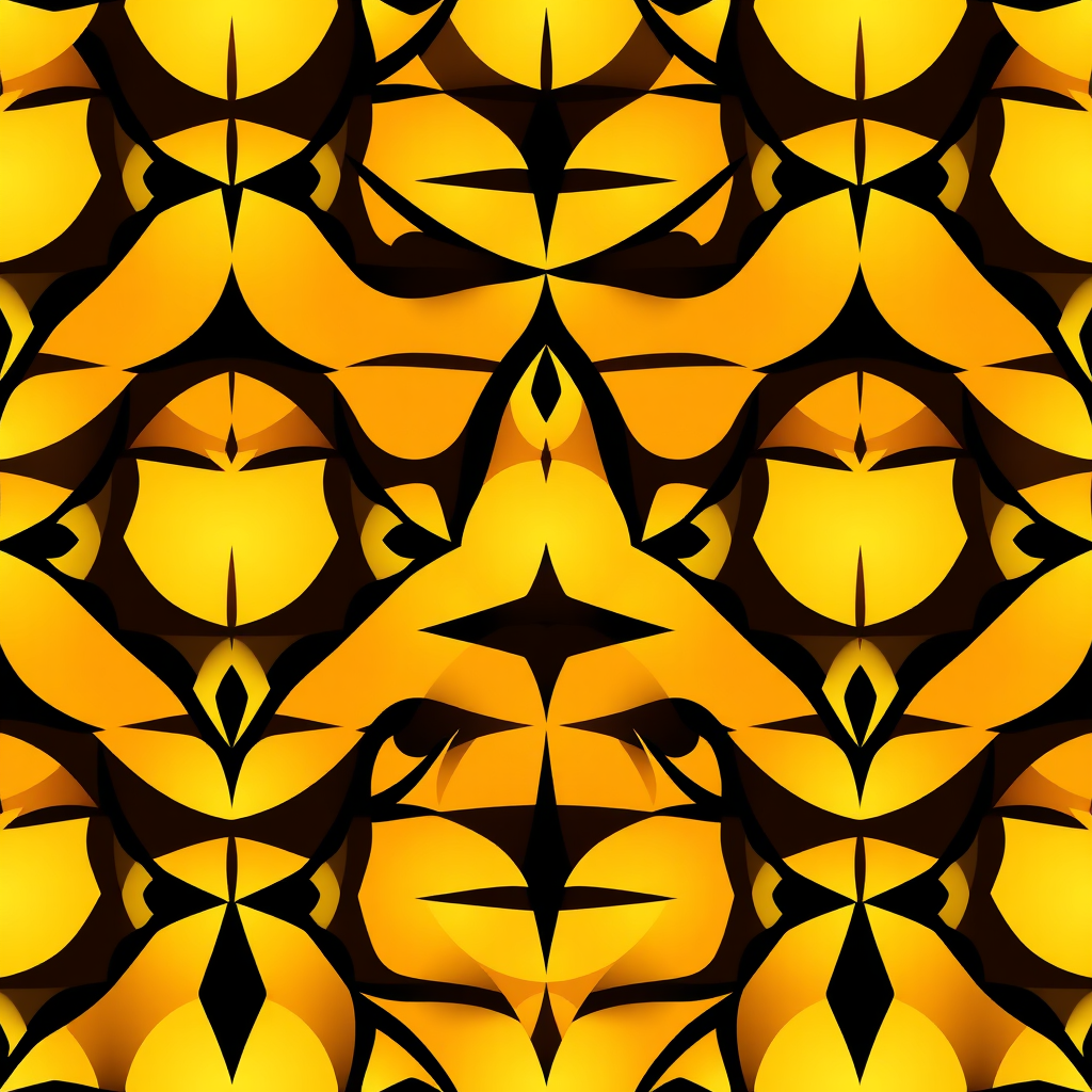 Pattern illustration inspired by the dynamic interplay of abstract geometric shapes, featuring a monochrome palette with a gradient of yellow to orange hues. This design emphasizes seamless repetition and intricate complexity, exuding a modern aesthetic through the integration of overlapping and intertwined abstract forms against a vertical aspect ratio of 9:16.