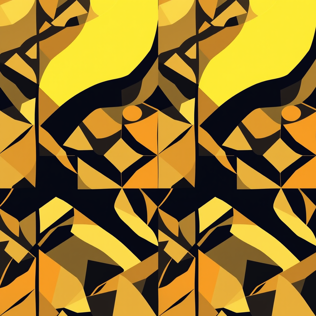 Pattern illustration inspired by the interplay of abstract geometric shapes in a monochrome palette, showcasing varying shades of yellow and orange. It features a seamless, repeating design with an emphasis on complexity and modernity, creating a dynamic visual experience through the integration of abstract forms, maintaining the essence while allowing for subtle creative enhancements.