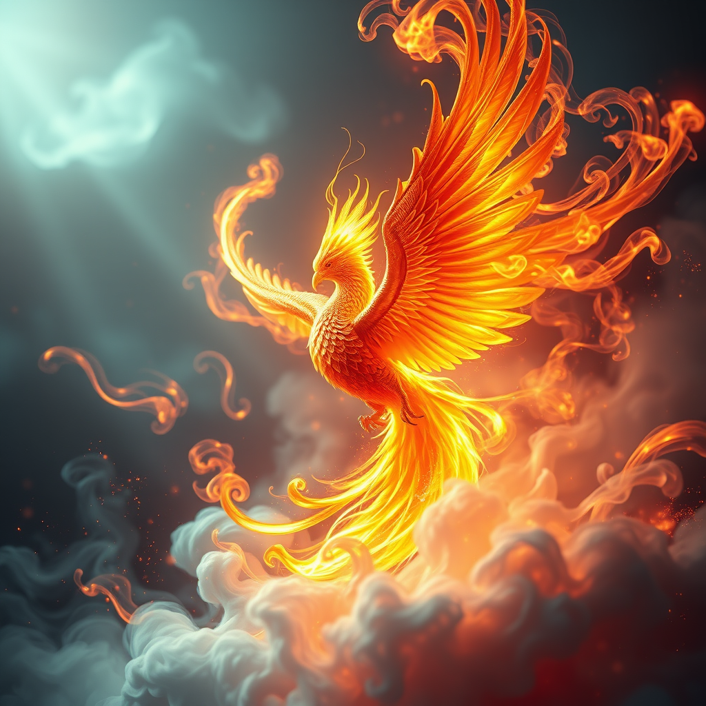 A breathtaking and mesmerizing phoenix erupting into a cascade of flames, inspired by the style of Greg Rutkowski, exuding luxury and elegance, with intricate and ornate details. The scene is vibrant and vivid, with smooth, soft tendrils of smoke swirling gracefully. The bird glows bright and heavenly, surrounded by elegant spirals of fire and twinkling sparks, creating a billowing, cinematic spectacle. The depiction is fantastical and hyperrealistic, capturing an otherworldly magic that's both mystical and perplexing. Crafted with the precision of ZBrush and Octane, this visual masterpiece boasts a dreamy bokeh effect and exquisite depth of field, resembling a scene from ArtStation or CGSociety, and rendered with the stunning capabilities of Unreal Engine.