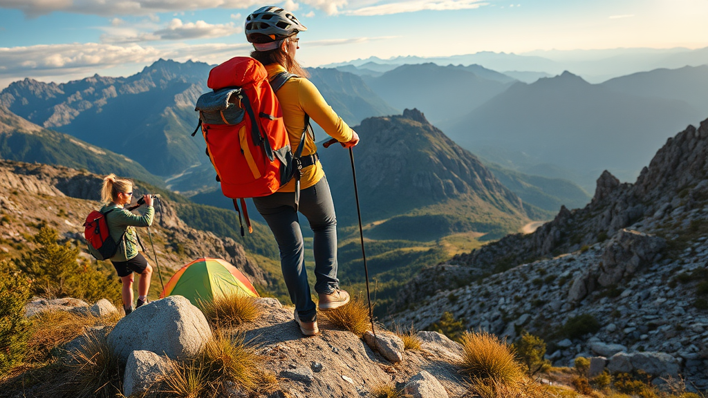 Photograph exhilarating outdoor activities like hiking, camping, mountain biking, and rock climbing, showcasing the thrill and beauty of these adventures set against breathtaking natural landscapes. Using a versatile FE 24-105mm f/4 G OSS lens to ensure outstanding image quality, sharpness, and vivid color reproduction. Adjust camera settings to an aperture of f/5.6 for a harmonious depth of field, an ISO of 200 for superior image clarity, and a shutter speed of 1/250 sec to capture the dynamic energy and freeze the action.