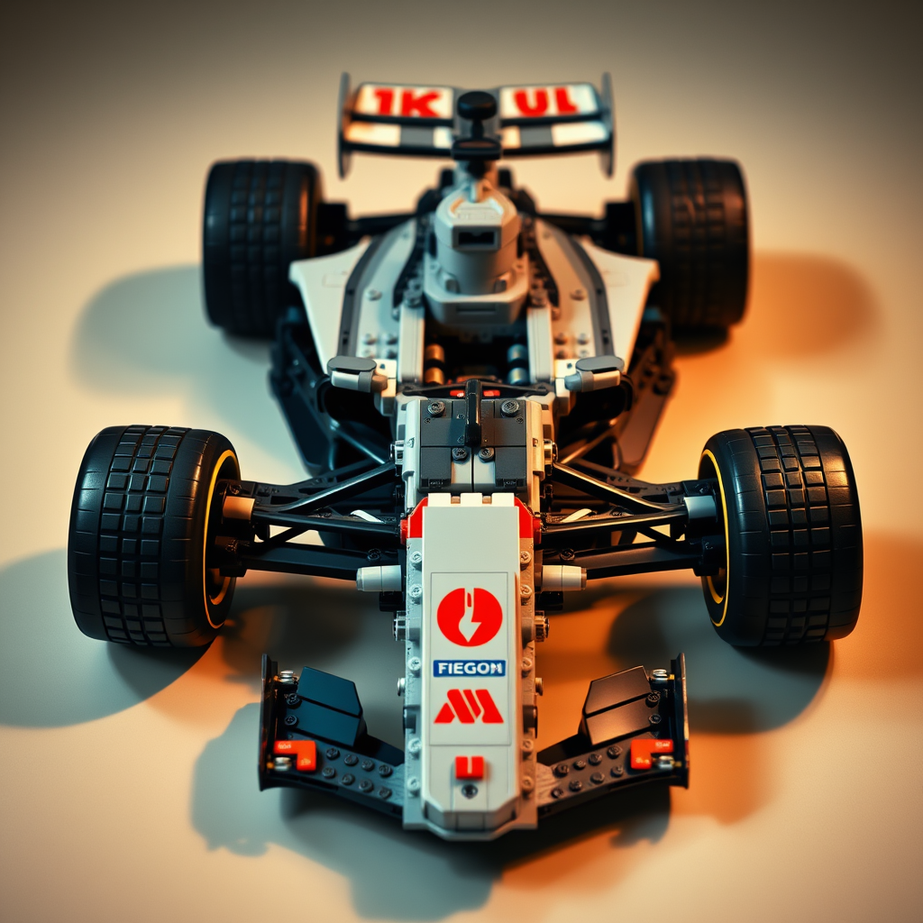 photography, aerial perspective, intricate lego sculpture, high-performance F1 car, components, life-size, fine brick intricacies, flawless arrangement, ambient lighting with gentle shadows, hyper-realistic, vibrant detailing, --aspect ratio 9:16, raw aesthetic, stylized elements, version 6.1