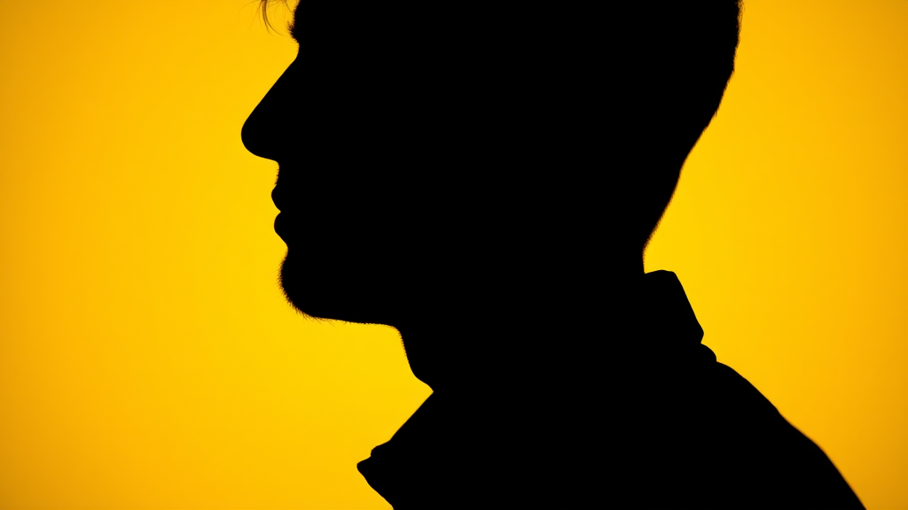 Photography portrait of contrast capturing the profile silhouette of a man against a vivid yellow backdrop, using a camera setup with a large aperture effect that enhances focus along the silhouette's edge. The low ISO maintains the depth of color, ensuring no grain and a photorealistic, ultra-high-definition appearance. The image adopts a 9:16 aspect ratio, allowing for a dynamic composition. Add creative touches like a subtle hint of light around the man's face to suggest texture, while still keeping the overall style raw and impactful.