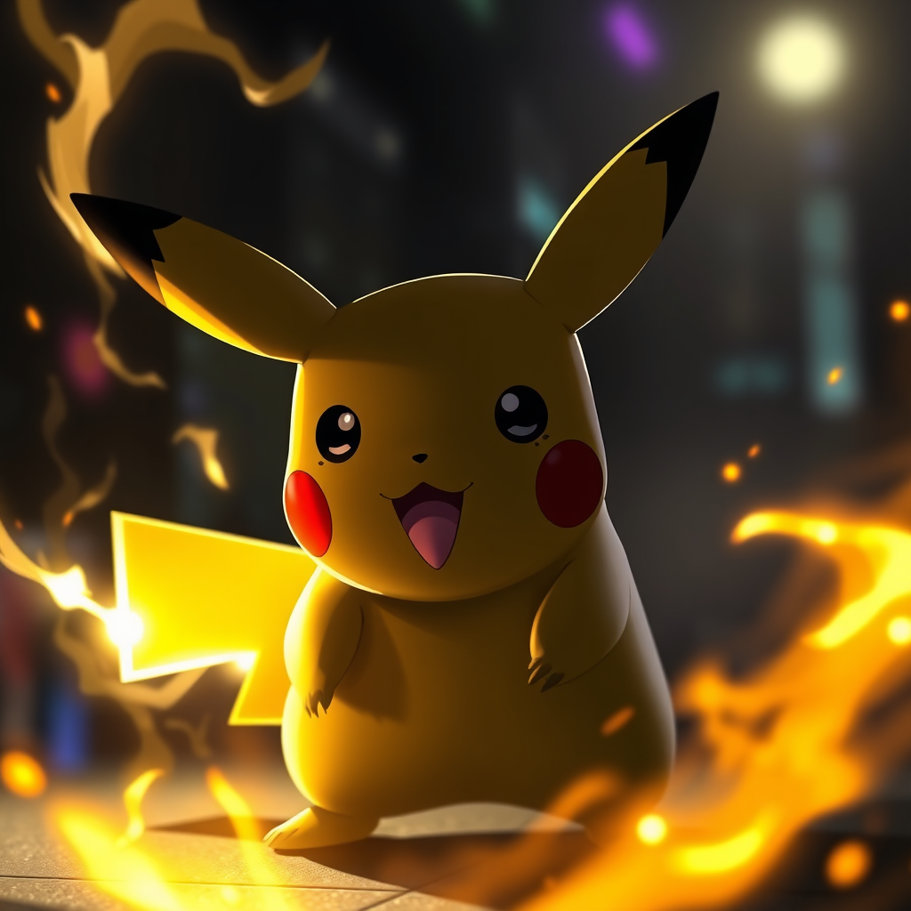 Pikachu in a dynamic chiaroscuro-inspired scene by Suehiro Maruo, featuring an energy-charged presence with cartoon realism. The composition is enhanced by an overexposure effect, blending the artistic flair of Magali Villeneuve. Luminous shadowing accentuates the vibrant atmosphere, creating an HD wallpaper with an elongated 31:64 aspect ratio and a stylized touch at level 750, capturing a vivid yet artistic portrayal in version 6.1.