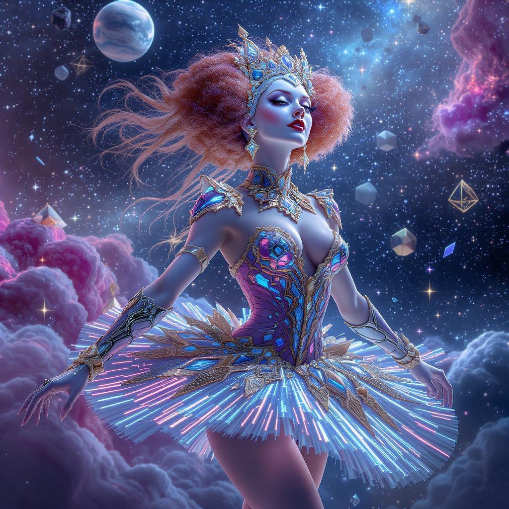 pixar portrait 8k photo, stunning luminescent wealthy cosmic prima ballerina with clowncore elements, russian android university girl, golden ratio features, sci-fi, fantasy, cyberpunk, elaborate, opulent, intricately detailed, digital painting, inspired by ever after high, octane render, artstation, concept art, seamless, crystal-clear focus, artwork reminiscent of art by artgerm, loish, wlop, capturing the essence of futuristic elegance and whimsy