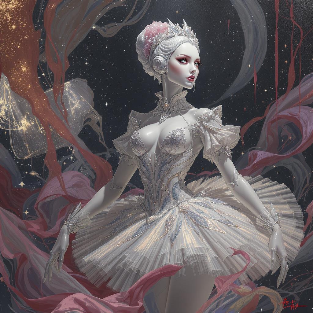 pixar portrait 8k photo, stunning metallic white elegant cosmic ballerina clowncore russian android college girl, harmonious proportions, sci-fi, fantasy, cyberpunk, ornate, lavish, exquisitely detailed, digital painting, ever after high style, octane render, artstation, concept art, smooth, crisp focus, illustration, inspired by artgerm, loish, wlop easynegative, bad-picture-chill-75v.