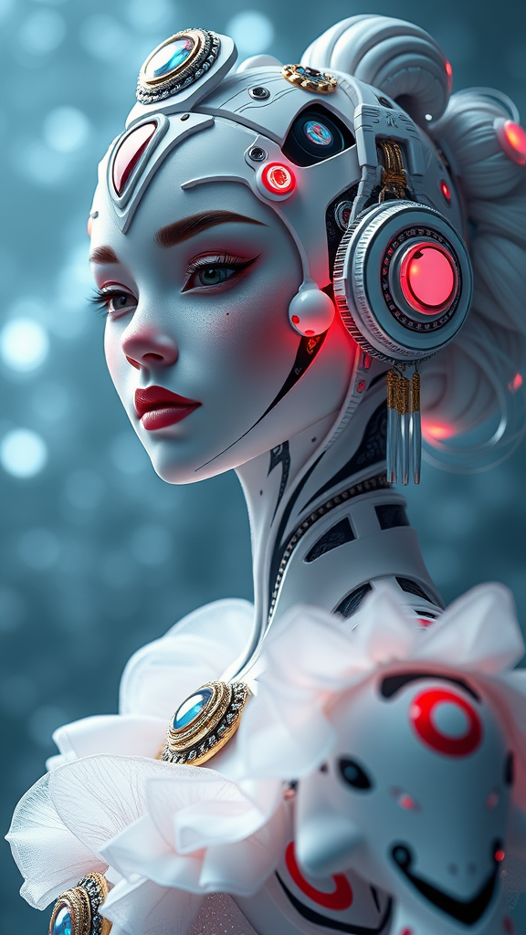 pixar studio portrait 8k resolution, stunning and radiant white galactic ballerina with clowncore and cyberpunk influences, a sophisticated Russian cyborg college student, featuring golden ratio elegance, intricate sci-fi and fantasy elements, highly detailed digital art style, inspired by ever after high aesthetics, rendered with octane precision, suitable for artstation, a smooth and sharply focused masterpiece, illustration style influenced by the renowned artists artgerm, loish, and wlop, capturing a futuristic and opulent essence.