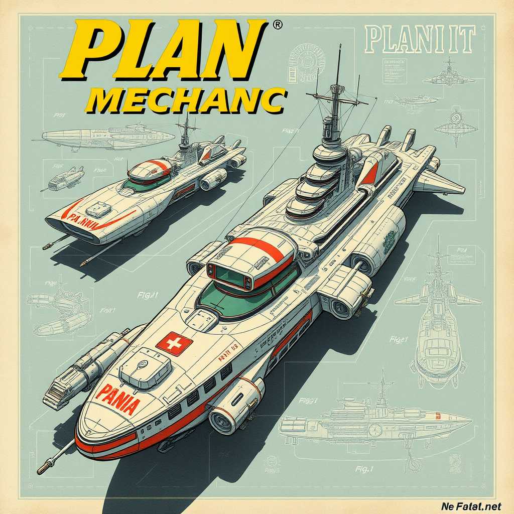 PlanIt, intricately detailed illustration of retrofuturistic vehicles featured in classic popular mechanics magazines | nostalgic vintage style | highly intricate digital art | concept rendering | vibrant poster design | critically acclaimed | hyper-detailed | dynamic scientific diagrams | precise technical illustrations | innovative architectural plans | patent blueprint models | perfect symmetry | naval battleship-inspired technology | imaginative modifications to classic motifs.