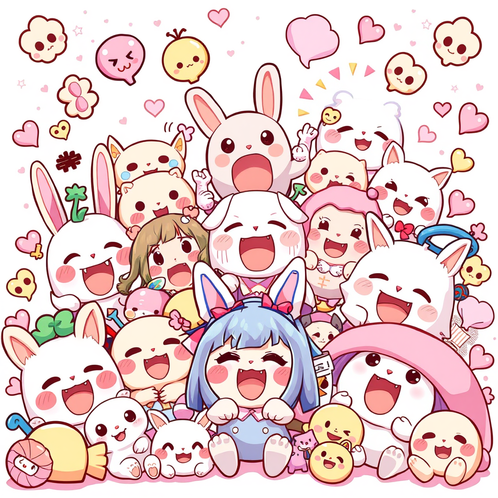 Playful kawaii theme, featuring irresistibly cute and adorable characters, bursting with vibrant colors and cheerful expressions, inspired by lively anime aesthetics, intricately detailed and beautifully whimsical.