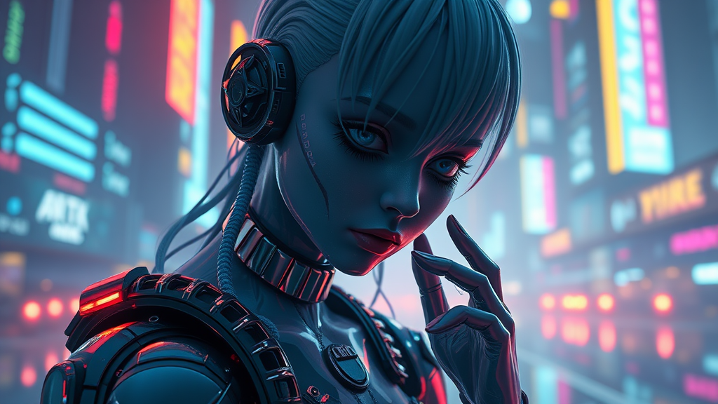 Portrait art of a neo-noir futuristic world, 8k ultra-realistic, featuring dynamic lens flare, atmospheric glow, and intricate details, bursting with color and cinematic lighting; highly trending on art platforms, 4k resolution, hyper-realistic focus with extreme details using Unreal Engine 5; a cinematic masterpiece capturing striking lumen reflections and breathtaking environments; depicting hyper-realism with advanced CGI, featuring futuristic vehicles; conceptual 3D render reminiscent of a surreal doll-like aesthetic; includes artistic imperfections like abstract forms, peculiar anatomy, extra limbs, distorted hands, and imaginative mutations.