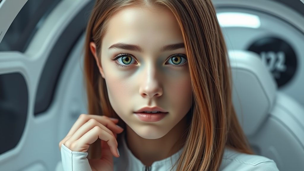 Portrait, captivating eyes, youthful and innocent expression, exceptionally beautiful slender girl, varied hair color, alluring pose, set in a futuristic environment, girl gazes into the camera, positioned in a sleek sci-fi white lab, futuristic reanimation capsule, remarkable quality, ultra-high resolution, photorealistic, 8k, hyper-realistic, Rembrandt-inspired lighting, no childlike qualities, well-proportioned anatomy, clear and focused image, avoiding poor qualities such as low resolution, jpeg artifacts, awkward anatomy, or compromised proportions. Presence of elegantly drawn hands and precise features, balanced proportions, avoiding duplicates or distortions, seamless and integrated composition, tastefully illuminated, naturally framed with circular elements, avoiding oversaturation, featuring luminous eyes, cohesive and composed expression, gentle light.
