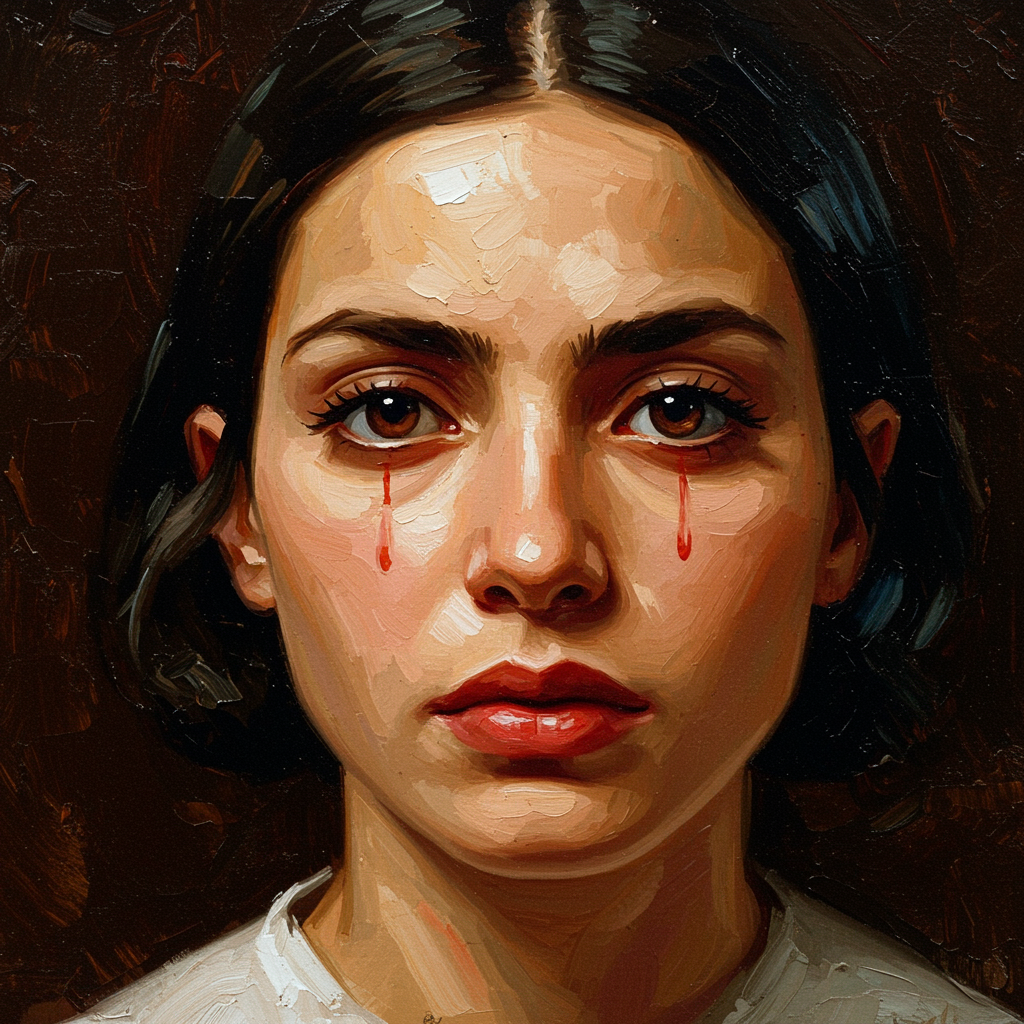 Portrait, intense gaze, oil on canvas, textured, innovative, reminiscent of Diego Velazquez, delicately brushed.