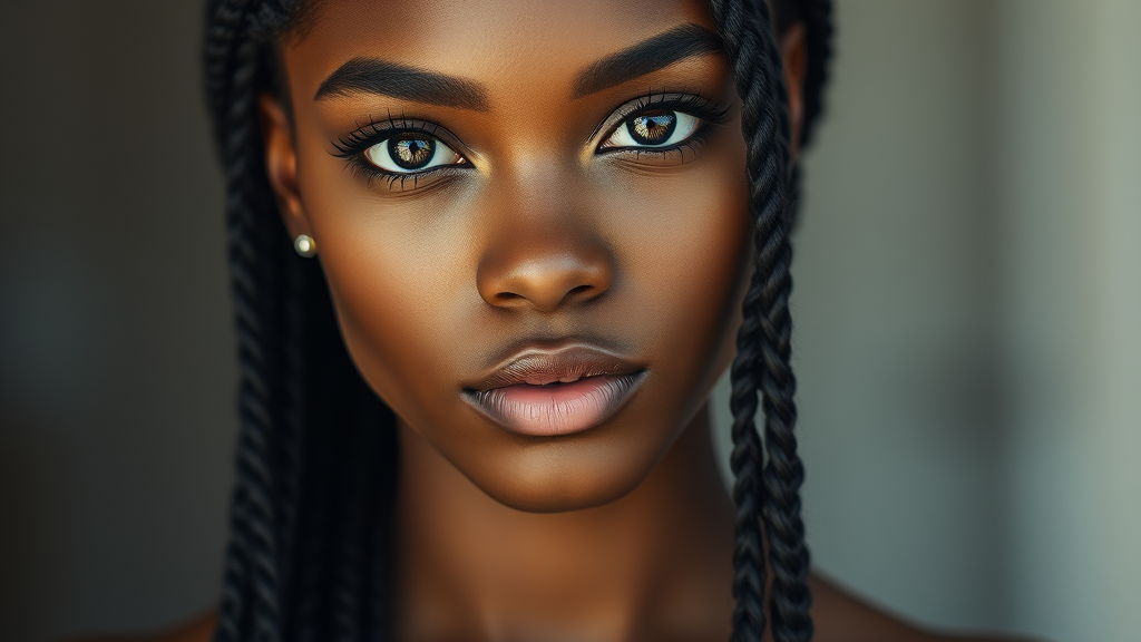 Portrait of a beautiful lady, RAW photo, hyperdetailed photography, soft light, head and shoulders portrait, 80mm, f22, trending on ArtStation Pixiv, high detail, sharp focus, aesthetic, 8k uhd, DSLR, intricate details, soft lighting, high quality, braids, close up, cropped, in frame, high resolution, flawless anatomy, natural proportions, elegant composition.