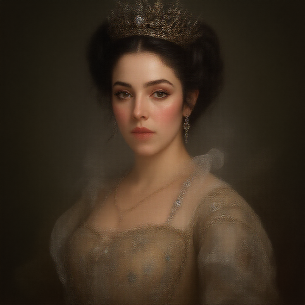 Portrait of a captivating royal lady, exquisitely detailed, strikingly cinematic illumination, intricately crafted features, intricate reflections, refined ray tracing, rendered in octane, crystal-clear focus, effortlessly smooth texture, 8k digital artwork, gaining traction on ArtStation, inspired by the styles of Seb McKinnon and Greg Rutkowski, with subtle ethereal elements and a touch of surreal mystique.