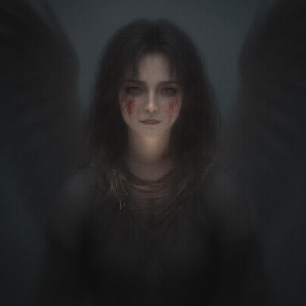 Portrait of a character with exceptional anatomy, featuring intricate details, showcasing high-quality artistry in a 500px style reminiscent of cgsociety. Set in a phoenix-like environment, this character has blood subtly adorning her face, contributing to a dark, mysterious atmosphere. The surroundings are misty, enhancing the anime-inspired yet realistic portrayal. Avoid low quality elements and ensure the character is fully in frame with focused, accurate anatomy. Keep the image sharp, clean, and free of artifacts, ensuring a polished and completed look.