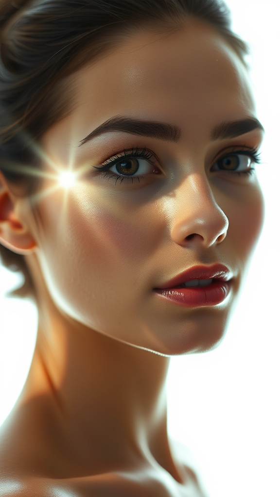 Portrait of a female model against a bright white backdrop, with ethereal light flares subtly gracing her face, almost rendering her features elusive, atmospheric --ar 4:5 --s 50 --v 6.0 --style raw.