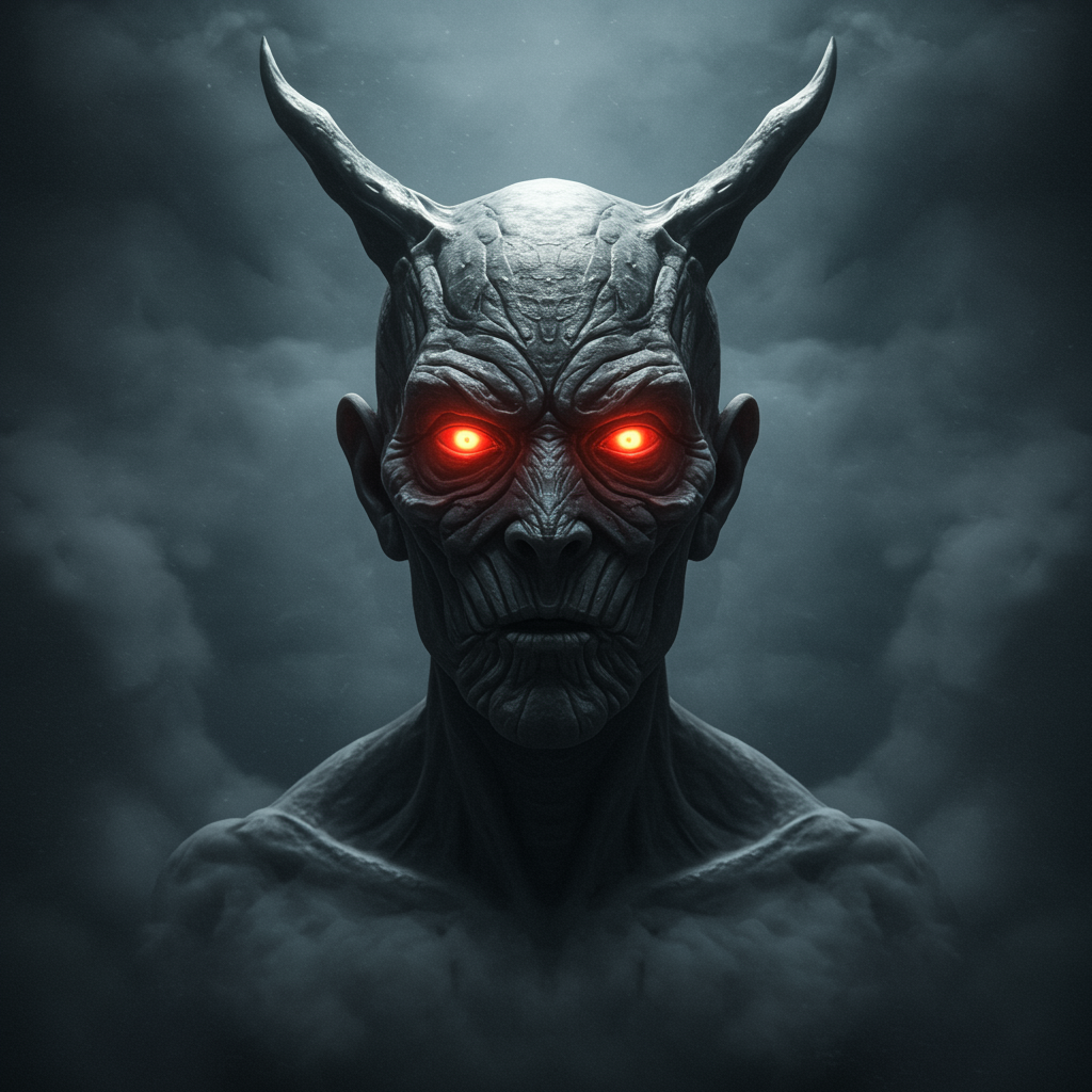 Portrait of a stop monster facing forward, exhibiting an aura of caution with elements of retreat, return, and warning. The composition achieves sharp focus and symmetrical balance, with the monster emerging through a volumetric fog. Its features are highly detailed, creating a sense of urgency and halted motion. Subtle creative modifications add an intriguing complexity to the creature's appearance, enhancing its aura of vigilance and presence.
