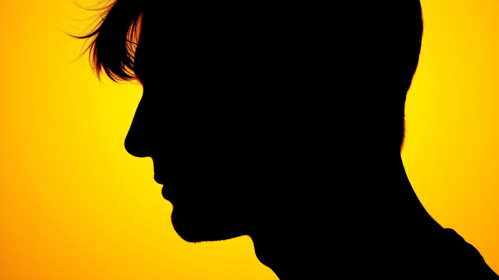 Portrait of a striking contrast featuring the profile silhouette of a man against a radiant yellow background, captured with a camera setup emulating a large aperture to focus on the delicate contour of the silhouette's edge, maintaining vivid color richness through a low ISO for a smooth, grain-free finish. The image is photorealistic and presented in UHD, with an aspect ratio of 9:16, incorporating subtle artistic elements to enhance the raw, natural style.