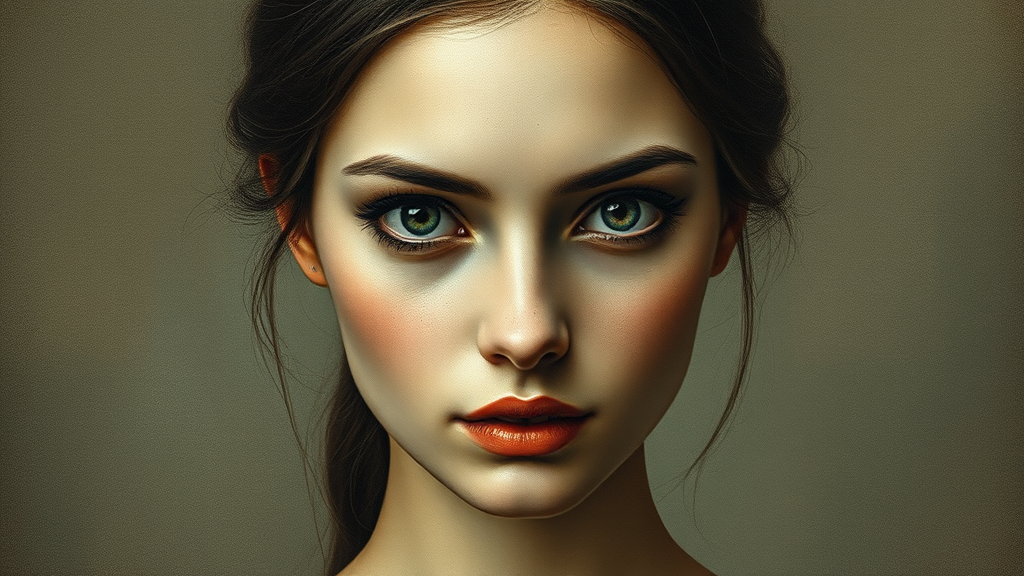 Portrait of a woman in the style of an oil painting, with a grainy texture reminiscent of classic works. Her eyes are intentionally left empty, adding a sense of mystery. The composition is minimalist yet avant-garde, filled with intricate details. The artwork evokes the essence of an old masterpiece by Diego Velazquez, capturing the serene yet complex expression of the subject --ar 16:9 --stylize 700 --v 6.
